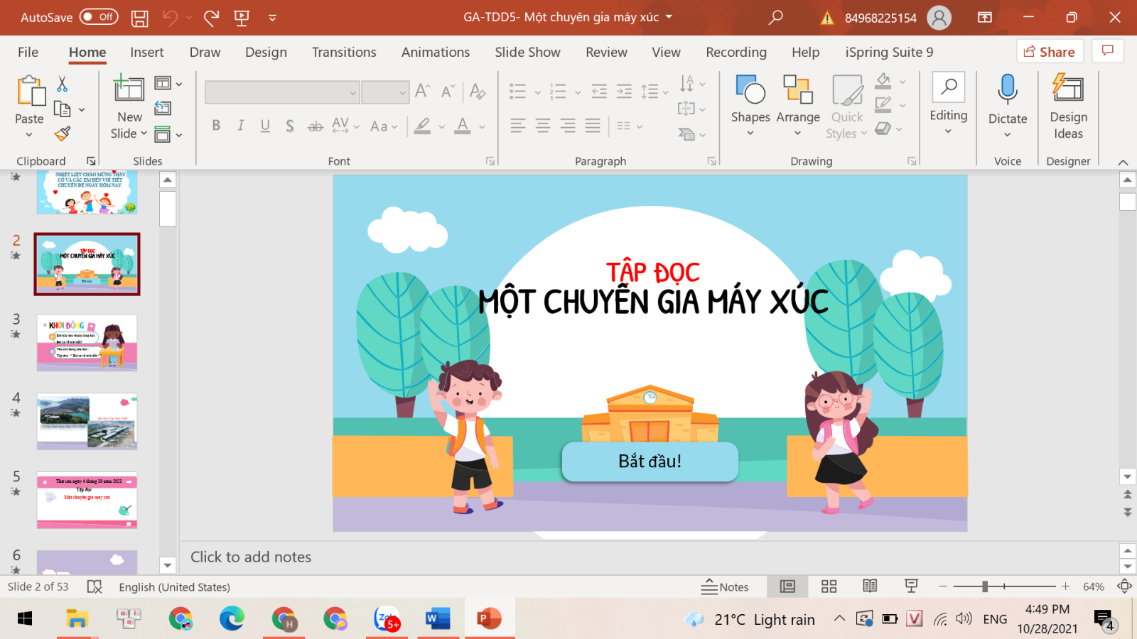 Tôi đã tìm hiểu và tiến hành xây dựng bài giảng môn Tập đọc bài “Một chuyên gia máy xúc”.