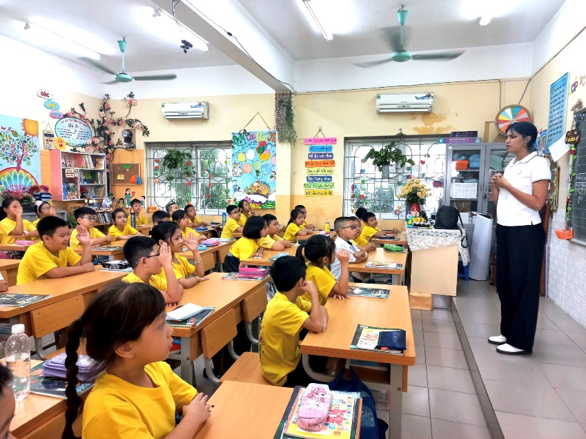 Hôm nay, đến dự và cùng học với các bạn học sinh lớp 3A3 của Trường tiểu học Thạch Bàn A một tiết học Tiếng Anh với giáo viên nước ngoài của Trung tâm Tiếng Anh Bình Minh, tôi đã cảm nhận một không khí học tập hào hứng, sôi nổi.