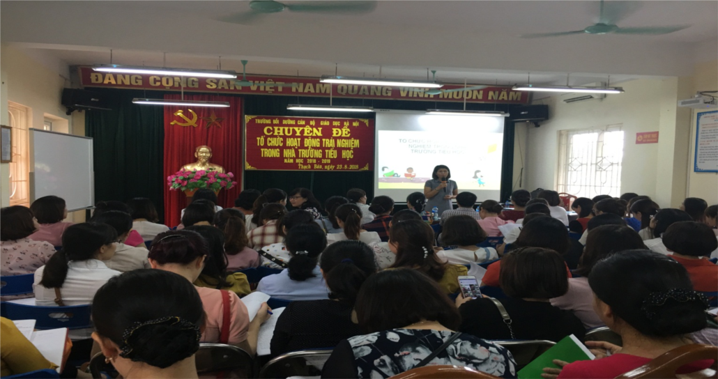 Chuyên đề : Hoạt động trải nghiệm trong trường tiểu học diễn ra rất thoải mái với sự trao đổi nhiệt tình của toàn thể giáo viên tham gia. Các thầy cô đã tự tạo cho mình được một hoạt động trải nghiệm ngay tại lớp học.