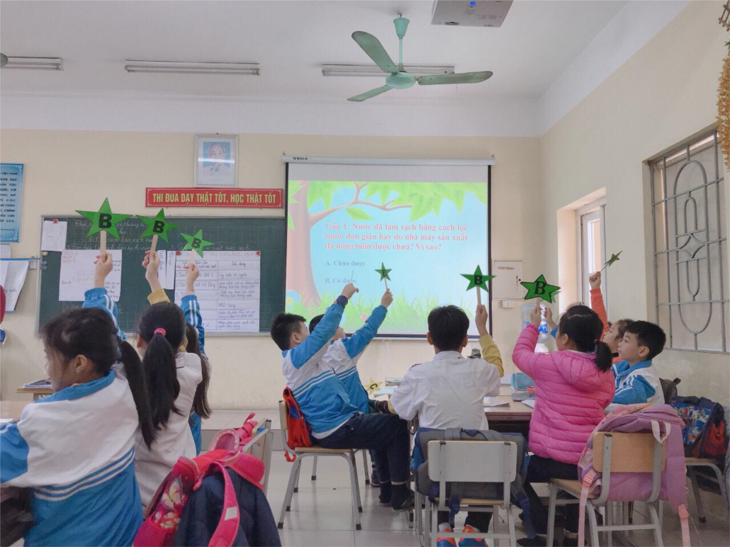 Ở hoạt động đầu tiên, cô giáo Thùy Dương đã mang lại bầu không khí vô cùng sôi nổi với chủ đề “Tìm hiểu một số cách làm sạch nước”. Dưới sự hướng dẫn, chỉ bảo ân cần của cô giáo Thùy Dương, các bạn học sinh đã mạnh dạn làm chuyên gia của tiết học, giải đáp những câu hỏi thắc mắc của các bạn về một số cách làm sạch nước, nêu lên được hiểu biết và vận dụng kiến thức của mình vào thực tiễn cuộc sống. Các bạn đã biết chia sẻ kiến thức, thông tin và cùng giúp nhau hiểu thêm và các phương pháp lọc nước và tác dụng của chúng… Thông qua đó, các bạn nhỏ càng thêm yêu quí, gắn bó và đoàn kết với nhau hơn.
