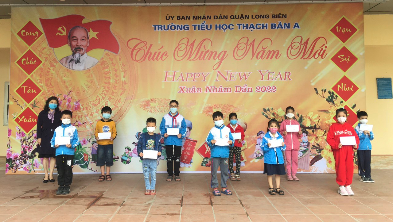Thực hiện công văn số 26/CTĐ ngày 18/12/2021 của Hội Chữ thập đỏ quận Long Biên về vận động ủng hộ Tết vì người nghèo và nạn nhân chất độc da cam năm 2022 và Kế hoạch số 01/KH-CTĐ ngày 05/01/2022 của Hội CTĐ phường Thạch Bàn về triển khai phong trào “Tết vì người nghèo và nạn nhân chất độc da cam” Xuân Nhâm Dần năm 2022 của Hội CTĐ phường Thạch Bàn, dưới sự lãnh đạo của Quận ủy, UBND quận, Hội Chữ thập đỏ quận Long Biên, Hội Chữ Thập đỏ phường Thạch Bàn về việc chăm lo Tết cho các đối tượng có hoàn cảnh khó khăn và nạn nhân chất độc da cam. Nhằm chia sẻ và động viên các em học sinh có hoàn cảnh khó khăn, nạn nhân chất độc da cam có thêm niềm vui khi Tết đến, xuân về, 14h00 ngày 26 tháng 01 năm 2022 Chi hội Chữ thập đỏ trường Tiểu học Thạch Bàn A đã tổ chức trao 10 suất quà Tết trị giá 3,000.000 đồng cho 10 học sinh có hoàn cảnh khó khăn (do Hội CTĐ phường Thạch Bàn hỗ trợ kinh phí). Ngoài ra, nhà trường củng trao tặng 08 suất quà cho 07 học sinh có hoàn cảnh khó khăn và 01 nạn nhân chất độc da cam ở tổ 15 phường Thạch Bàn trị giá 2,400.00 đồng.