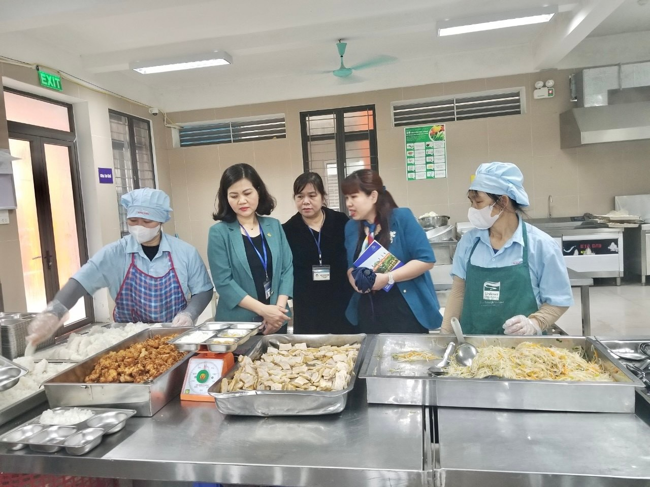 Tại nhà trường, đoàn kiểm tra đã tiến hành kiểm tra hồ sơ sổ sách, hợp đồng mua bán thực phẩm, việc khám sức khoẻ định kỳ, việc tập huấn kiến thức ATTP và bản cam kết vệ sinh an toàn thực phẩm của cán bộ quản lý phụ trách công tác bán trú và giáo viên, nhân viên quản lý bán trú, nhân viên chế biến tại bếp ăn bán trú. Đ/c Đinh Thị Thu Hương – UVTV, Phó Chủ tịch quận – Trưởng Đoàn kiểm tra liên ngành đã trực tiếp giám sát việc chia khẩu phần ăn, chỉ đạo Phòng y tế, Trung tâm y tế tes tinh bột, kiểm tra 20 khay ăn bất kỳ của HS. Qua kiểm tra cho thấy, nhà trường đã thực hiện ký hợp đồng với Công ty Cổ phần du lịch và thực phẩm Sao Việt - Đây là đơn vị đủ điều kiện, tiêu chuẩn, đã được UBND quận Long Biên thẩm định, đánh giá hồ sơ năng lực và công nhận đủ điều kiện ATVSTP tại Báo cáo số 367/BC-ĐKT ngày 21/7/2023 của UBND quận Long Biên. Công ty Cổ phần du lịch và thực phẩm Sao Việt đảm bảo đúng quy trình; nhà trường phối hợp với công ty làm tốt công tác vệ sinh môi trường, vệ sinh trong chế biến, bảo quản thực phẩm. Chất lượng công tác tổ chức bán trú được nâng cao, đảm bảo định lượng suất ăn và an toàn bữa ăn cho học sinh; bếp ăn được thiết kế theo nguyên tắc một chiều; trang thiết bị đồ dùng, dụng cụ của nhà bếp hiện đại, đảm bảo theo quy định, được vệ sinh sạch sẽ, 20 mẫu tes đều đạt yêu cầu. Nhà trường thực hiện tốt công tác quản lý bán trú, công tác giám sát bếp ăn bán trú. Nhà trường phân công cán bộ, giáo viên, nhân viên giao nhận thực phẩm vào 6 giờ sáng hàng ngày. Việc lưu mẫu thức ăn 24h đúng theo quy định; sổ kiểm thực 3 bước, sổ lưu mẫu thức ăn ghi chép đầy đủ, rõ ràng. Cảnh quan nhà trường sáng – xanh – sạch – đẹp, không có rác tồn đọng trong khuôn viên. Nhà trường thực hiện tổng vệ sinh hàng tuần, đảm bảo an toàn vệ sinh trong công tác phòng chống dịch bệnh. Đoàn kiểm tra cũng tư vấn cho công ty cách sơ chế thực phẩm dành cho HS khối 1,2; cách chia cơm riêng để thức ăn cho HS trong khay luôn đảm bảo ngon miệng; điều chỉnh thêm rau xanh trong thực đơn. Đoàn kiểm tra cũng đề nghị nhà trường tiếp tục phát huy và đẩy mạnh công tác tuyên truyền, thường xuyên kiểm soát nguồn gốc thực phẩm và các khâu: Chế biến, bảo quản, vận chuyển thực phẩm để luôn đảm bảo cho học sinh những bữa ăn chất lượng, đảm bảo ATVSTP.