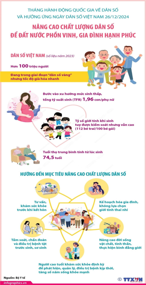 Tháng Hành động Quốc gia về dân số và Ngày Dân số Việt Nam năm 2024 không chỉ là dịp để nâng cao nhận thức về công tác dân số mà còn là cơ hội để phát huy các giá trị văn hóa, bảo vệ sức khỏe cộng đồng và xây dựng một xã hội phát triển bền vững. Từ đó góp phần vào mục tiêu phát triển xã hội toàn diện./.