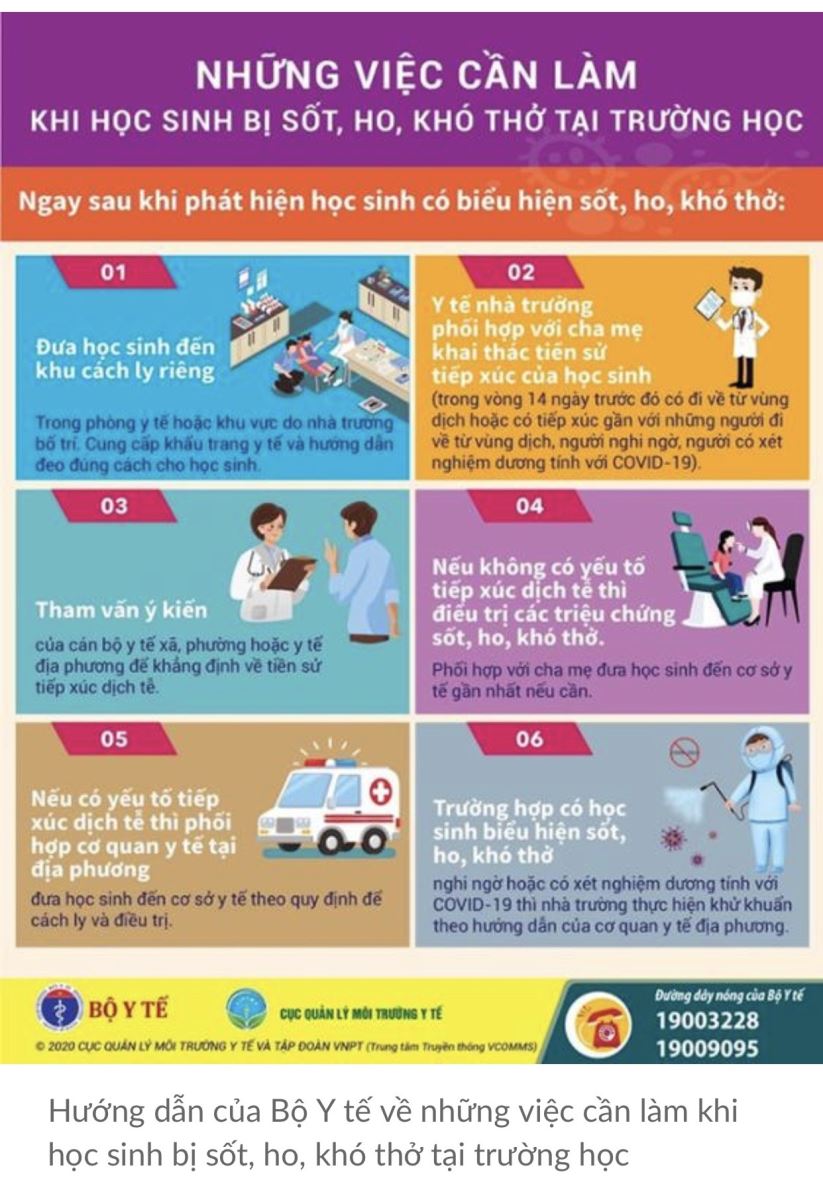 * Những việc cần làm khi học sinh bị sốt, ho, khó thở tại trường học: