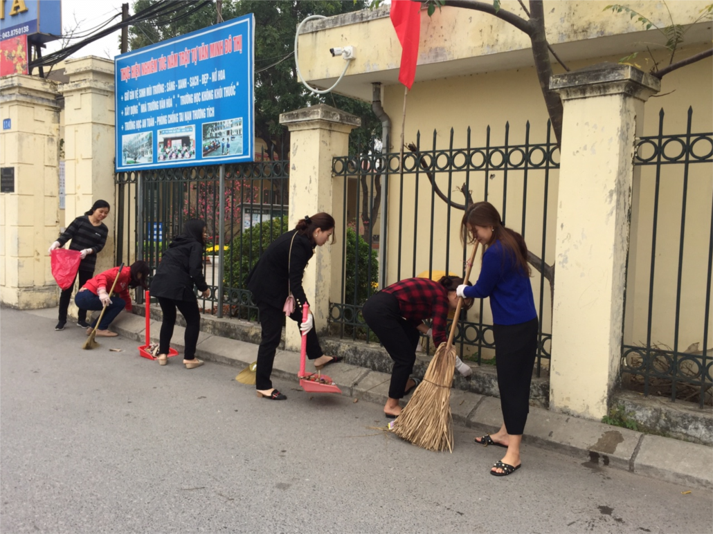 8h00 ngày 01/02/2019 các đ/c CBGVNV trường Tiểu học Thạch Bàn A dưới sự chỉ đạo của Đ/c Nguyễn Thị Thúy Mai – Hiệu trưởng nhà trường đã triển khai tổng vệ sinh môi trường các phòng chức năng, các lớp học, khu vực ngoại cảnh, sân chơi, khu phụ cận, các công trình vệ sinh; thu gom rác, phế thải, phát quang bụi rậm, khơi thông cống rãnh, sắp xếp chậu hoa, cây cảnh hợp lý, đảm bảo cảnh quan nhà trường sạch đẹp.