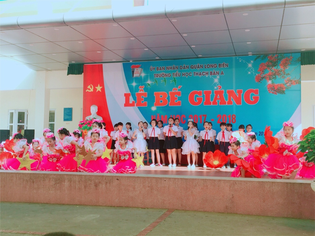 Sáng ngày 25 tháng 5 năm 2018 trường Tiểu học Thạch Bàn A long trọng tổ chức Lễ tổng kết năm học 2017 - 2018 và chia tay học sinh lớp 5 niên khóa 2013 – 2018.